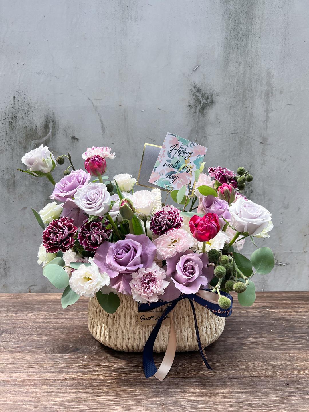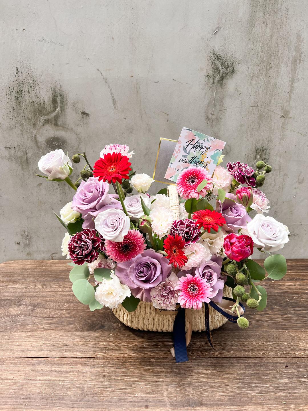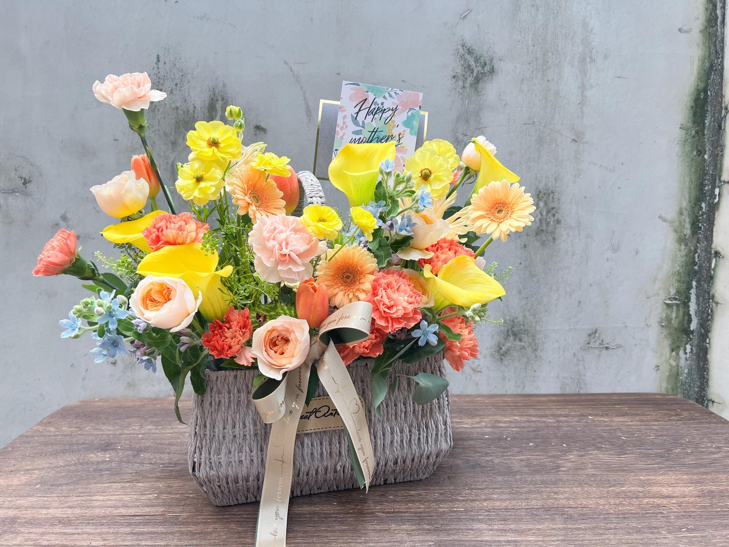 提籃的設計方便您輕鬆攜帶這份溫馨的祝福,讓愛與感激不再受限於花束的短暫,