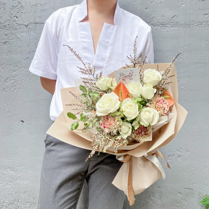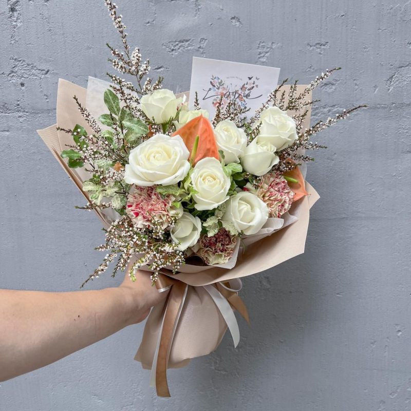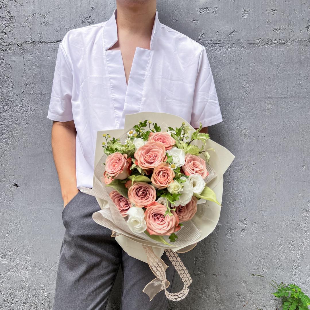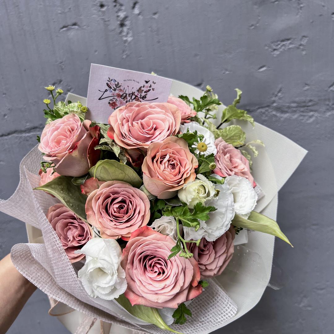 這束花彷彿將愛情的滋味層層調和,在卡布奇諾的醇厚香氣中,